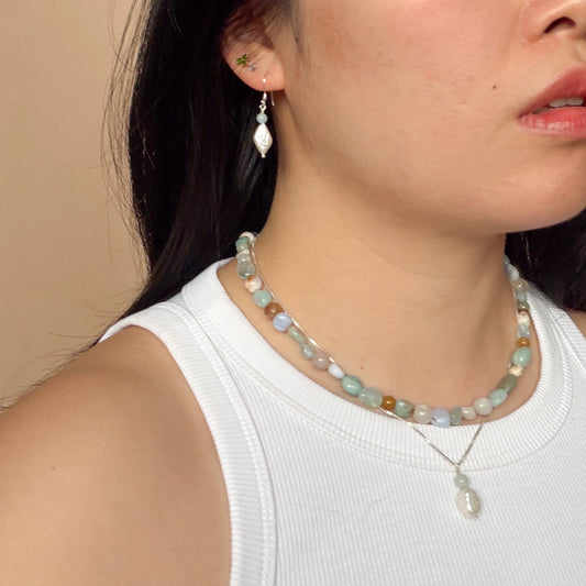 Wavy Stud Drop - Aquamarine + Pearl
