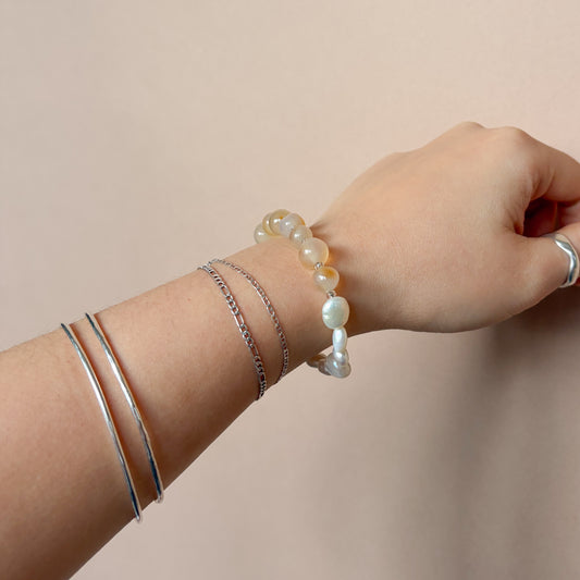 Half-half Bracelet - Agate + Pearl