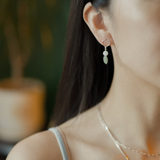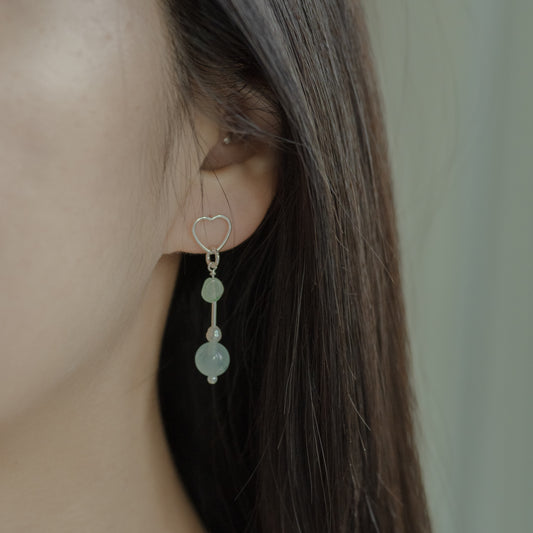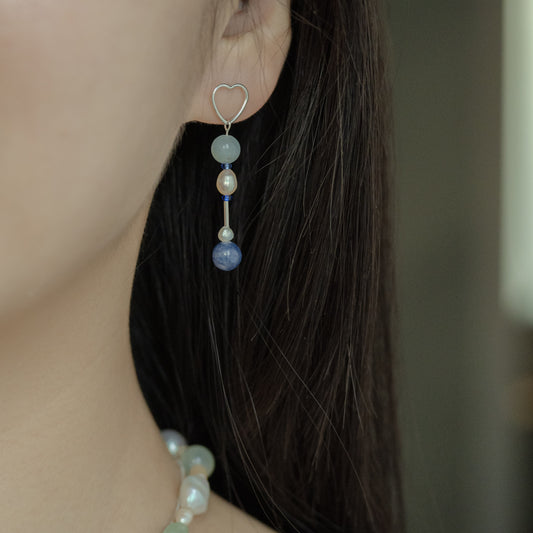 Asymmetrical Heart Stud Drops - Aquamarine + Aventurine