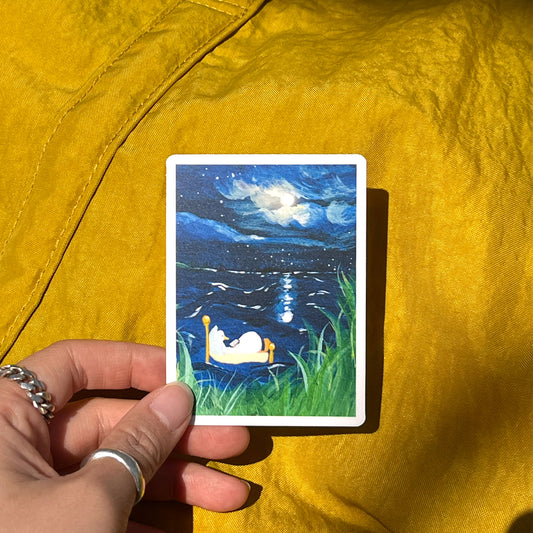Duck Reading Under The Moonlight Vinyl Sticker - Matte