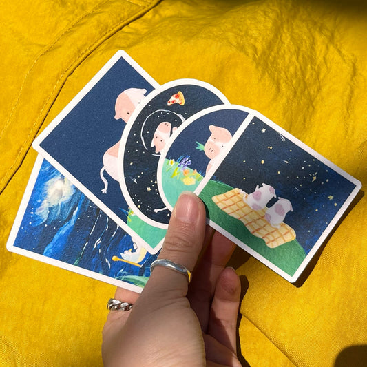 Stargazing Pink Cows Vinyl Sticker - Matte