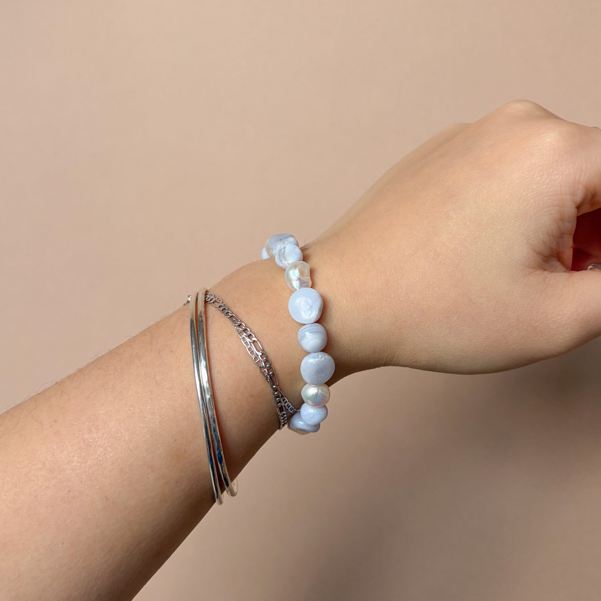 Blue Lace Agate + Pearl Bracelet