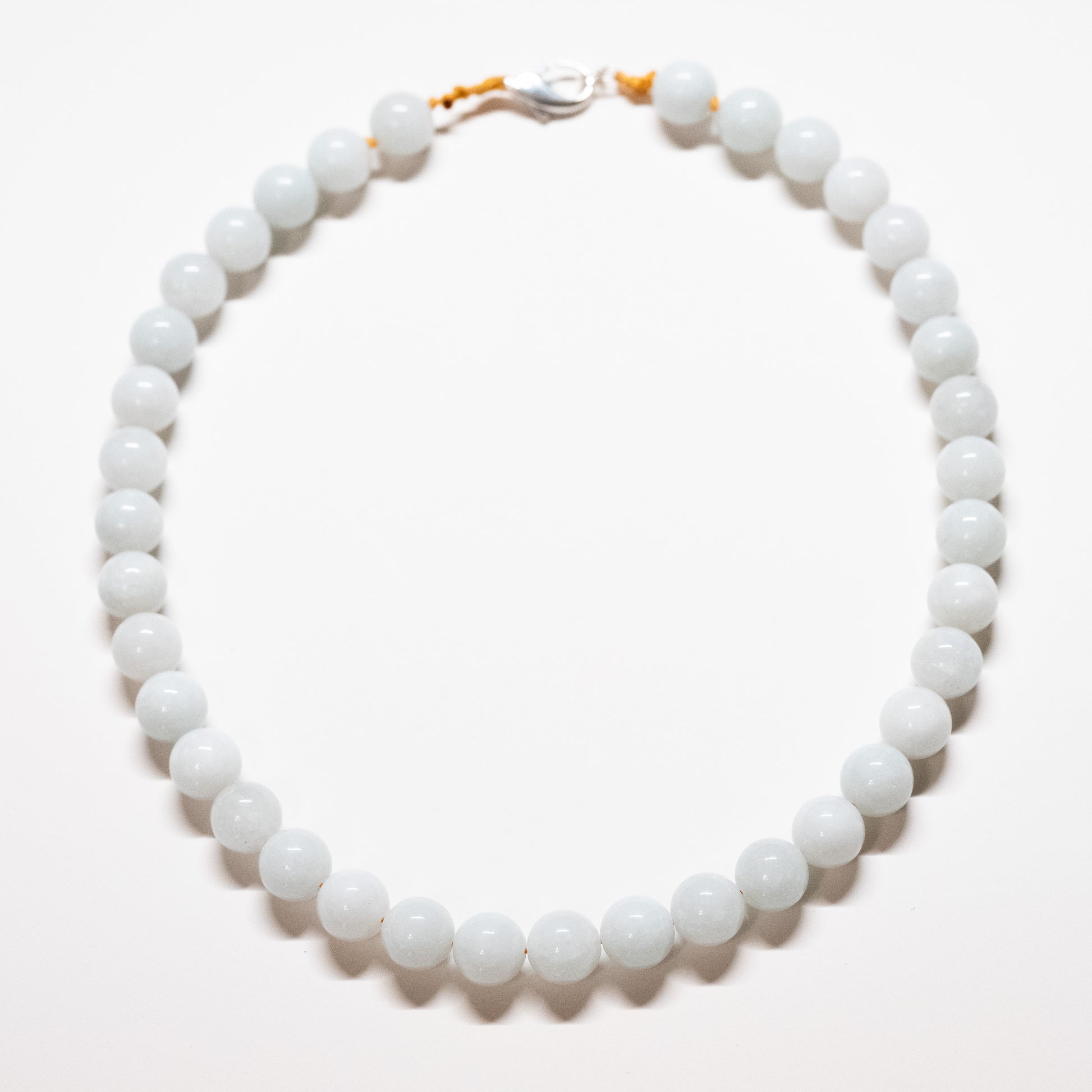 Dyed jade, sterling silver clasp.