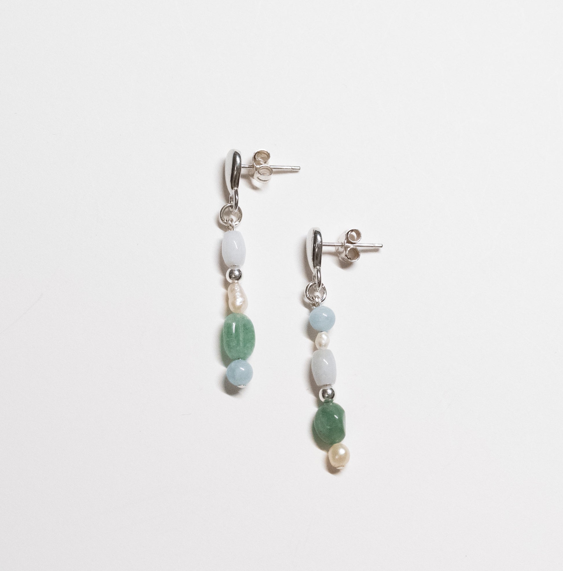 Sterling silver, aquamarine, aventurine, freshwater pearls.