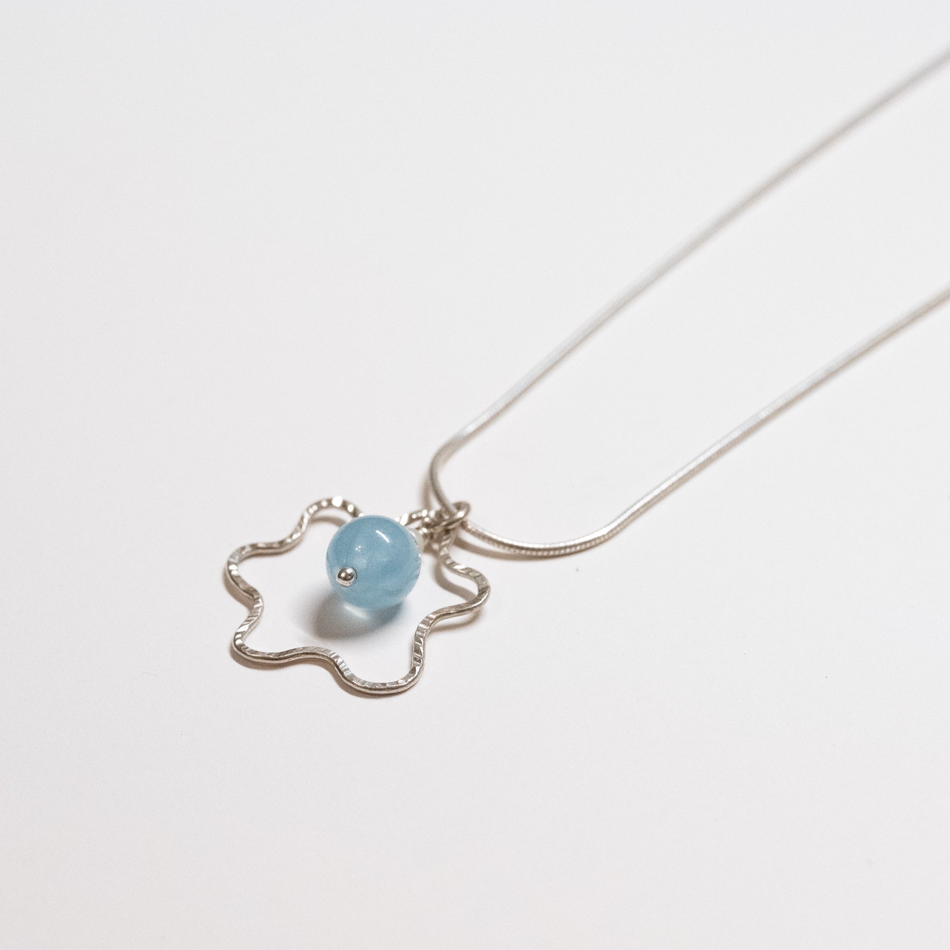 Hand-formed and hammer-texture squiggly pendant, featuring an aquamarine.